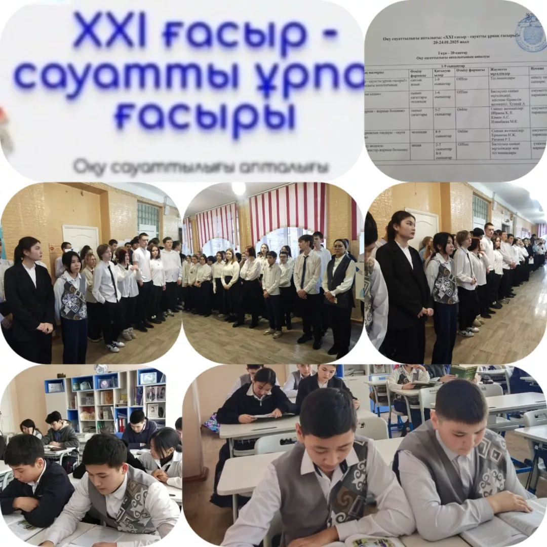 "# 50 НОМ" КММ 20.01-24.01.2025ж аралығында "ХХІ ғасыр-сауатты ұрпақ ғасыры!"атты оқу сауаттылығы апталығы басталды. Жоспарға сәйкес мектебімізде "ХХІ ғасыр-сауатты ұрпақ ғасыры" тақырыбында саптық жиыны ,"Сауатты ұрпақ- жарқын болашақ" тақырыбында сынып сағаттары өткізілді.