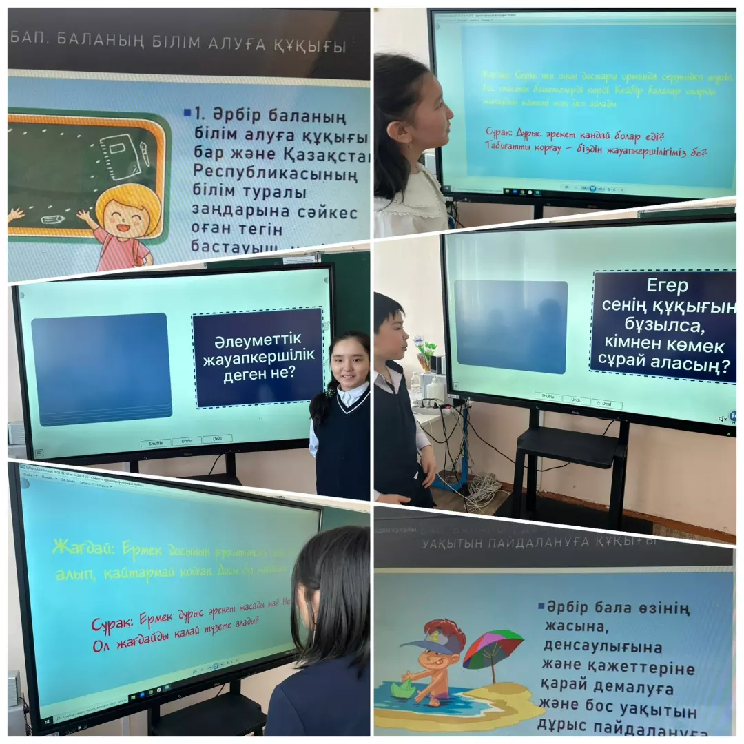 6Ә сыныбында "Құқықтық тәртіп және әлеуметтік жауапкершілік" тақырыбында сынып сағаты өтті. Оқушылар өмірден алынған мысалдар арқылы құқықтық тәртіптің маңыздылығын талқылады және әлеуметтік жауапкершіліктің әр адамның іс-әрекетінде көрініс табатынын анықтады. Сынып сағатының нәтижесінде оқушылар заңдарды сақтау, құқықтарын білу және өздерінің әлеуметтік жауапкершілігін сезіну қажеттігін ұғынды.