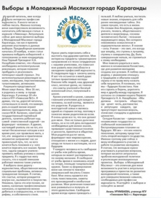 В рамках сотрудничества с Академией "Болашак", и реализации факультативного курса "Журналистика", в журнале "Лимонад", в номере за ноябрь 2020 года опубликована статья ученицы Урумбаевой Анель "Выборы в молодежный Маслихат города Караганды"