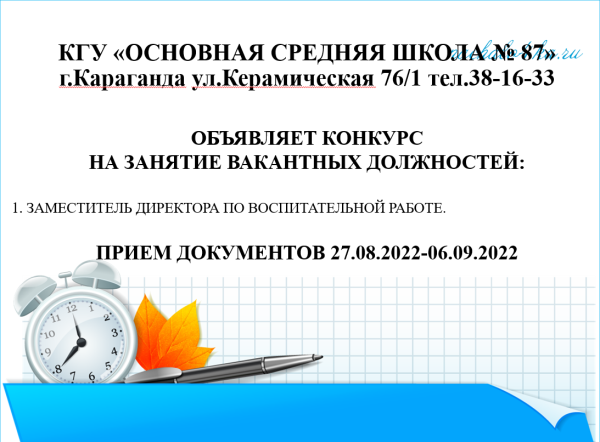 Бос лауазымдарға орналастыруға конкурс жарияланады.