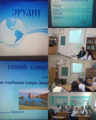 Жаратылыстану-ғылыми сауаттылық апталығы аясында 8 сыныптарда география сабақтарында "Эрудит " зияткерлік ойыны өтті. Балалар география саласындағы білімдерін көрсетіп, ойынға үлкен қызығушылық танытты.
