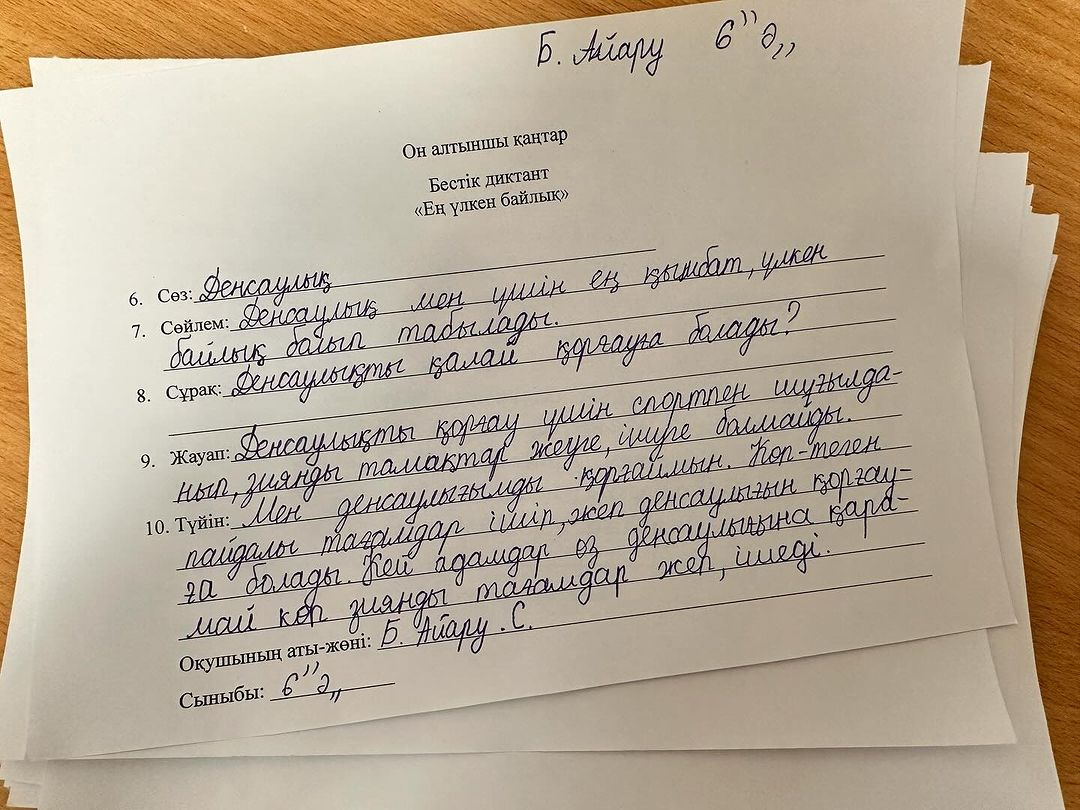 16 января 2024 года на тему рассказа Ибрая Алтынсарина “как есть мир” среди 5-7 классов 5 “А” 6”а,7 “а” классы написали работу “пятиклассный диктант”.