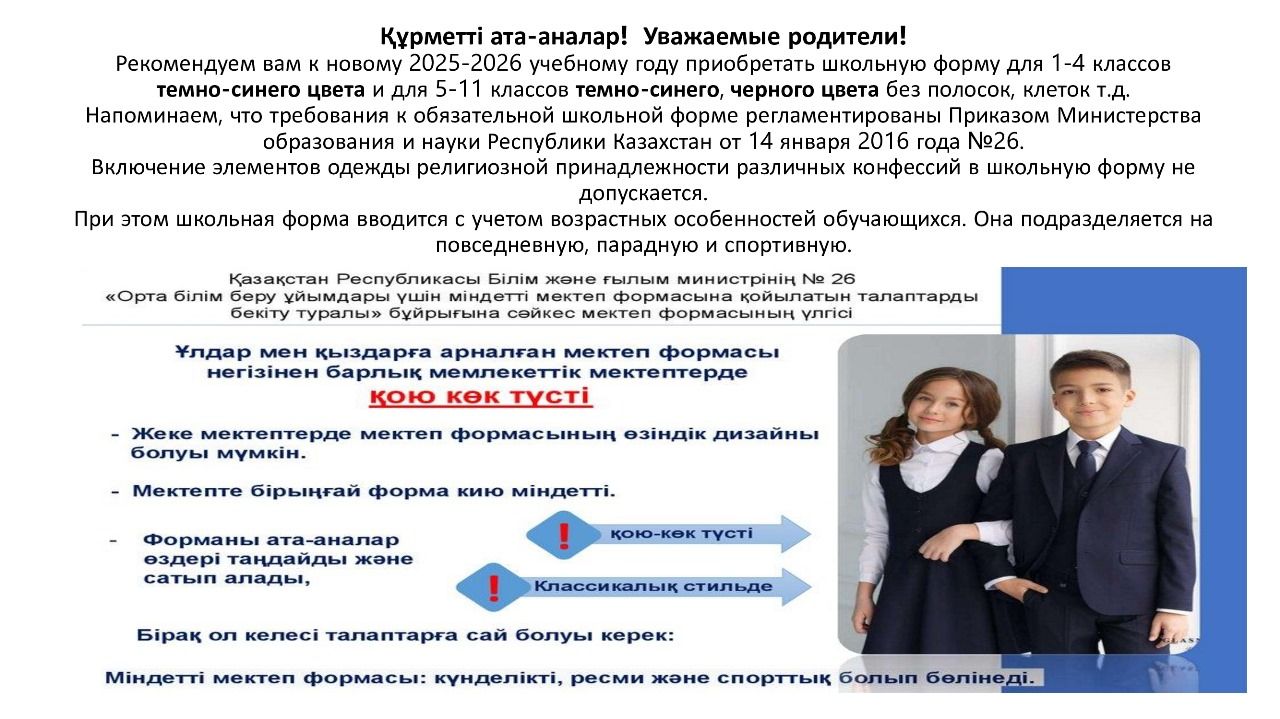 2025–2026 жаңа оқу жылына арналған мектеп формасына қатысты ақпарат