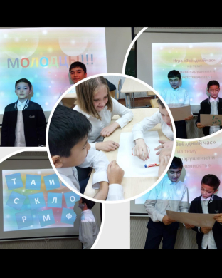 Балалар жылы аясында «Жұлдыздар сағаты» интеллектуалды ойынына 6«Ә» сынып оқушылары қатысты. Ойынды мектептегі «Құқық және тәртіп» фракциясының мүшелері ұйымдастырды.