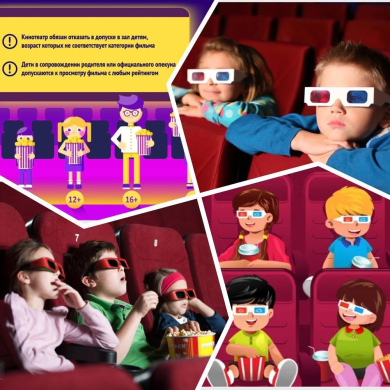 При посещении кинотеатров необходимо учитывать возраст ребенка и водить на мероприятия, соответствующие его возрасту.