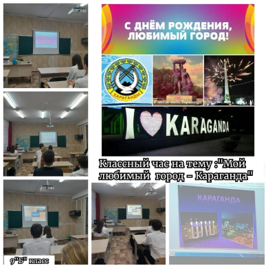 Өз қаласына деген сүйіспеншілік пен қызығушылықты арттыру мақсатында 9 «Б» сыныбында «Менің сүйікті қалам Қарағанды» атты ауызша журналы өткізілді.