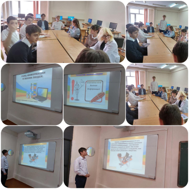 Ақпараттық сауаттылықты дамыту апталығы аясында 9 ақпанда 8 сыныптар арасында «Адам өміріндегі ақпарат» атты әңгіме өткізілді.