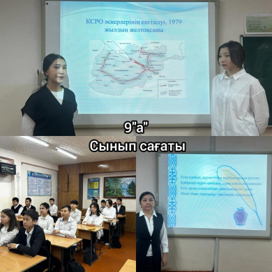 9 «А» сыныбында ”Интернационалист жауынгерлерді еске алу“ тақырыбында сынып сағаты өткізілді. Сынып жетекшісі Сагындыкова С.С