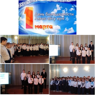 Өз елінің тарихына құрметпен қарауға тәрбиелеу, азаматтық пен патриотизмді қалыптастыру мақсатында Қазақстанда Алғыс айту күніне арналған жалпы мектепішілік жиын өтті.