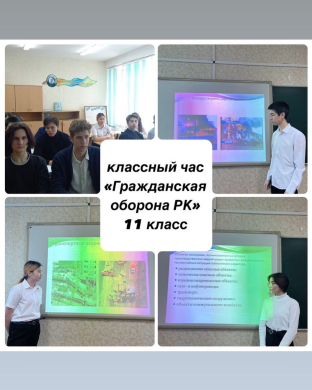 27 февраля в 11 классе проведен классный час на тему "Гражданская оборона РК". Классный руководитель Сейлбек Г.Қ
