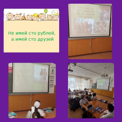 В рамках Недели финансовой грамотности в 4"Б" классе был проведён классный час на тему: "Не имей 100 рублей, а имей 100 друзей". Классный руководитель Щур О.С