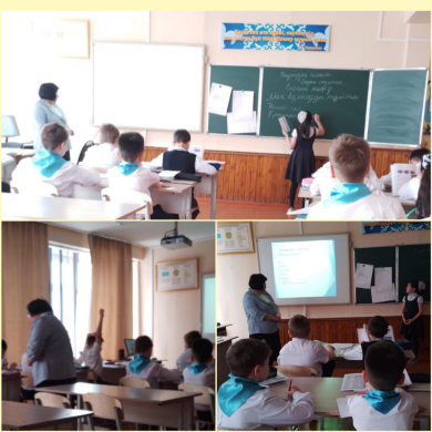 "Қазақ тілі мұғалімдерінің ӘБ" апталығы жұмысының жоспарына сай 4"Б" сыныбында қазақ тілінен "Каспий теңізі" тақырыбында ашық сабақ өткізілді. Мұғалім Кадауова А.С