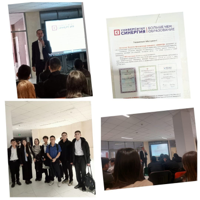 28.03.2023ж кәсіптік бағдар беру жұмысы бойынша 10-11сынып оқушылары "Синергия" Университеті өкілдерімен кездесуде болып мамандықтармен танысты.