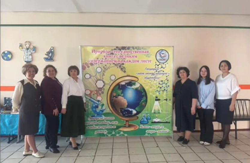 География пәнінің мұғалімдері: З.Е. Пивненко, А. Т. Оспанова және биология пәнінің мұғалімдері: Ш. Д. Әйтенова және Н. Е. Шмурикова макеттер көрмесін ұйымдастырды.