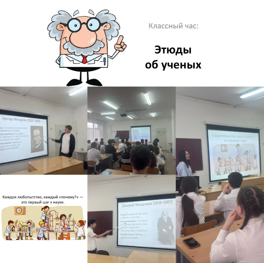 "Жаратылыстану сауаттылығы" апталығы аясында 2025 жылғы 7 сәуірде 7-сыныпта "ғалымдар туралы зерттеулер"тақырыбында сынып сағаты өткізілді. Оқушылар география, химия және биология сияқты ғылымдарға көрнекті ғалымдардың қосқан үлестерімен танысты. Сынып жетекшісі-Надежда Евгеньевна Шмурикова.