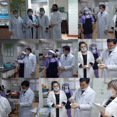 Бұл күні асханадағы ас мәзірінде бекітілген құрамға сәйкес, алма қосылған сәбіз салаты, минтай балығы, пісірілген қарақұмық (гречка), компот, қарабидай наны болды.Тексеру барысында ас мәзірі бойынша ескерту болмады. Барлық тағамдар сапалы әрі дәмді, тамақ таратылғанда арнайы ыдыс құралдарымен беріледі. Асханадағы барлық қолданылатын инвентарлар жеке бекітілген және арнайы таңба-белгілері бар.Тез бүлінетін өнімдердің сақтау мерзімдерінің таратудың санэпидемиологиялық ережелері мен нормаларын орындауды қамтамасыз етіп отырады. Асхана қызметкерлері санитарлық талаптарды сақтайды.
