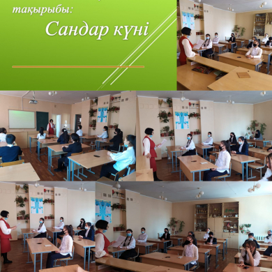 Қарағанды облысында білім беруді дамытудың оқу-әдістемелік орталығының ұйымдастыруымен 2022 жылдың 25 қаңтарында «МАТЕМАТИКА АЙНАЛАМЫЗДА» математикалық сауаттылық апталығында 7 "В" сыныбында "Сандар күні" тақырыбында сынып сағаты өтті. Сынып сағатының мақсаты: оқушылардың логикалық ойлау, қабылдау, есте сақтау қабілеттерін жан-жақты жетілдіріп дамыту.
