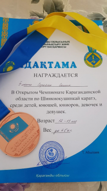 Сашик Серобян, ученик 6б класса, занял 3 место на областных соревнованиях по Шинкиокушинкай каратэ.