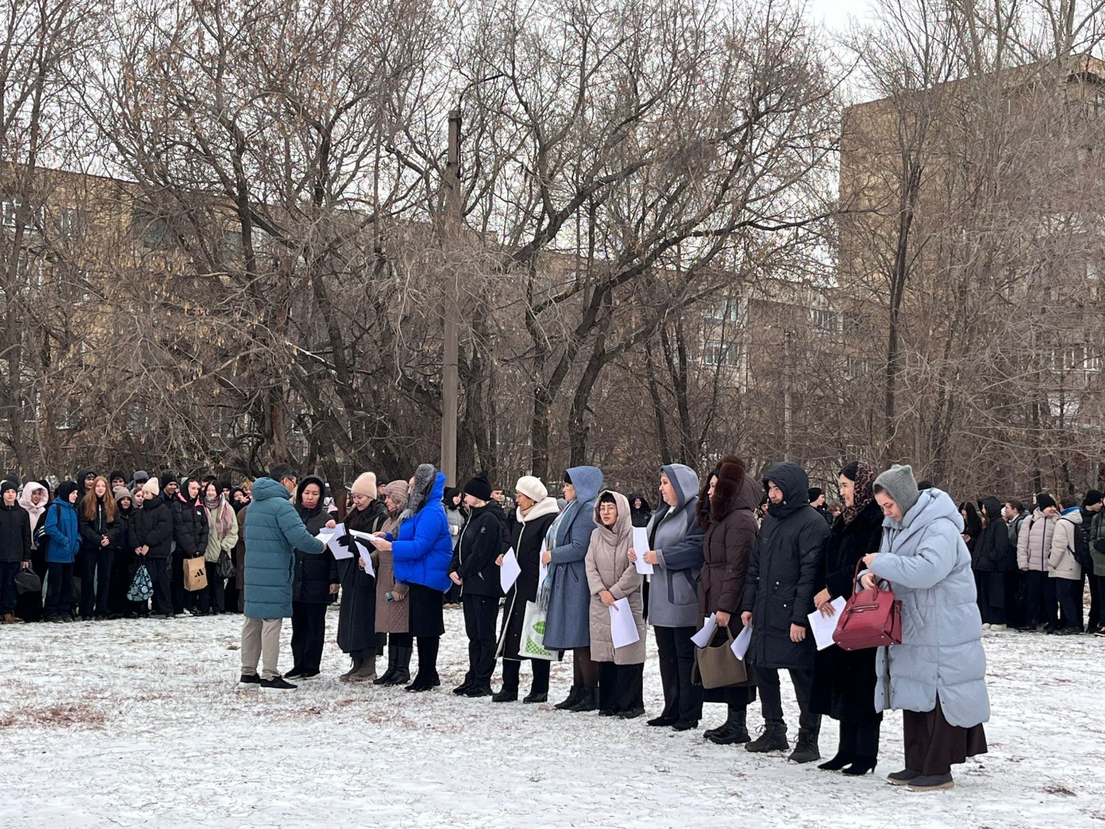 Во исполнении приказа отдела образования города Караганды, в соответствии с требованиями Законов Республики Казахстан «О гражданской защите» в целях обучения учащихся 1-11 классов, преподавательского состава и технического персонала действиям при ЧС природного и техногенного характера была проведена учебная эвакуация, согласно порядка эвакуации. Было эвакуировано 489 человек 1 смены из них: 449 учащихся, 31 учитель, 9 техперсонала, время эвакуации - 8 минут.