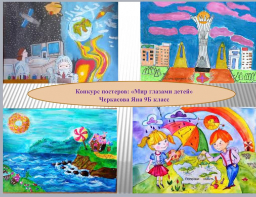 №82 ЖББ мектебінің 9Б сынып оқушысы Черкасова Яна байқауға қатысып, көркем мектепте оқып жүргенде жинаған топтамасынан өз жұмыстарын көрсетті.