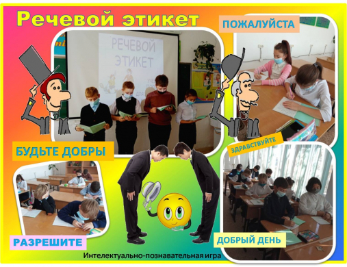 Современный этикет — это правила поведения, помогающие производить приятное впечатление и строить эффективное общение. Они включают в себя опрятность, культуру речи, вежливость и умение держаться в различных ситуациях . Мир меняется - меняются правила, меняемся мы. Мы общаемся ежедневно и учимся вести себя в обществе. Так 13 октября состоялась интелектуально-познавательная игра «Речевой этикет» в 5 классах, в которой ребята расширили и закрепили свои познания о вежливых и добрых словах , о их значении для каждого человека.
