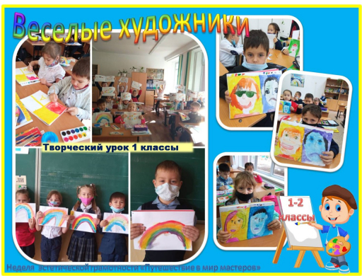 Эстетикалық сауаттылық апталығы аясында 1 сыныптп «Көңілді суретшілер» шығармашылық сабағы өтті.