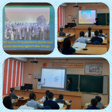 В рамках цифровой недели, у учащихся 5 класса прошел классный час на тему «30 лет со дня 1-го Всемирного Курултая казахов».