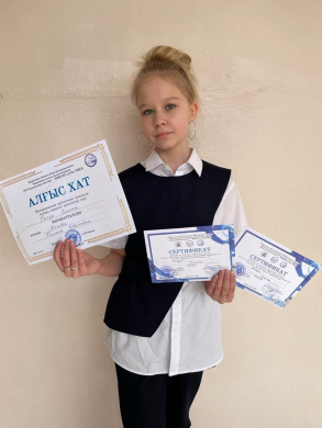 2022 жылдың 30 наурызында 7Б сынып оқушысы Рачук Злата Қарағанды облыстық мұражайының ғимаратында өткен «Жан қадамдары» бейнелеу өнері бөлімі студенттерінің шығармашылық жұмыстарының көрмесіне мүсін мен бейнелеу өнері суретін ұсынды. Златаға қатысқаны үшін алғыс хат пен сертификат берілді.