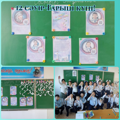 12.04.2023 жылы 2 Ә сыныбында "Ғарыш күні" туралы сабақ өтті. Ғарышқа 1961 жылы 12 сәуiр күнi тұңғыш рет Юрий Гагарин ұшты. Қазақтан ғарышқа бiрiншi болып ұшқан - Тоқтар Әубакiров. Бiз қазақ ғарышкерi Талғат Мұсабаевты, Айдын Айымбетовты мақтан етемiз!