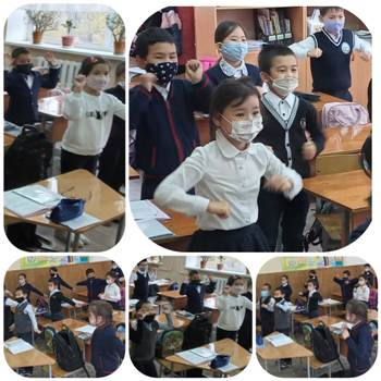 2 "Ғ" сыныбы. Сергіту сәтінде оқушылардың көңіл-күйін дамытуға арналған жаттығулар орындалды.
