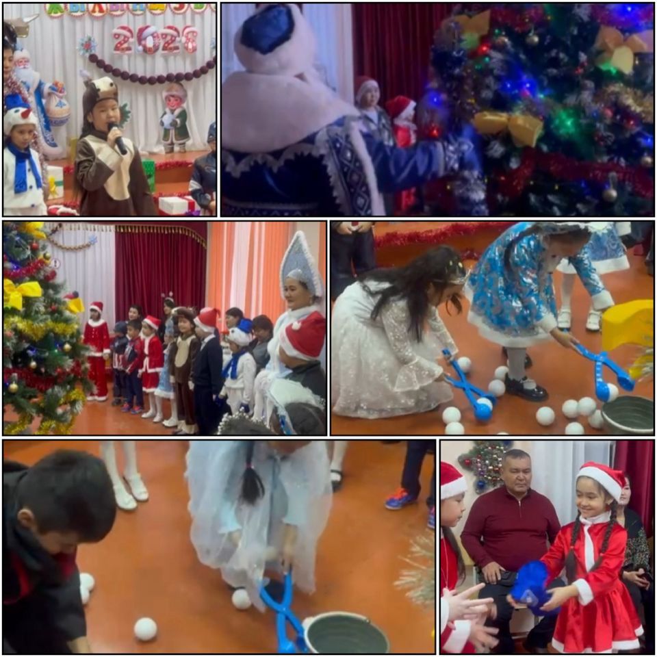 Мерекелік бағдарлама барысында оқушылар ән айтып, би билеп, тақпақтарын мәнерлеп оқып, ертегі кейіпкерлерінің образында сахналық қойылымдар көрсетті. Аяз ата мен Ақшақардың қатысуы балалардың қуанышын арттырып, мерекенің сәнін келтірді.
