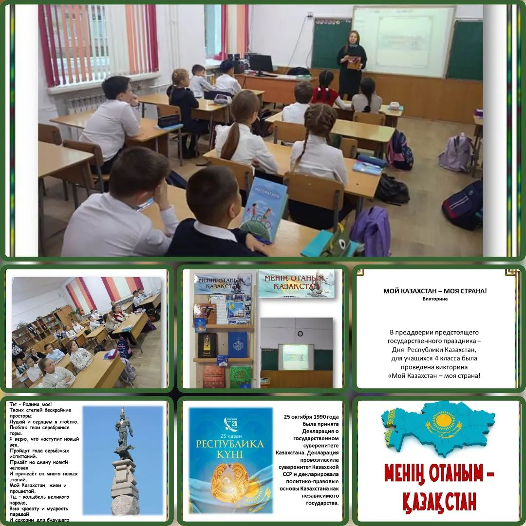 В преддверии предстоящего государственного праздника – Дня Республики Казахстан, для учащихся 4 класса была проведена викторина «Мой Казахстан – моя страна!