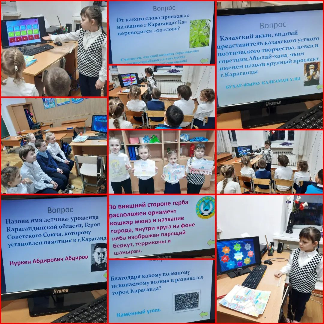 5.02.2024 г. во 2 "Б" классе прошёл классный час, на тему: Караганда- вчера, сегодня, завтра!