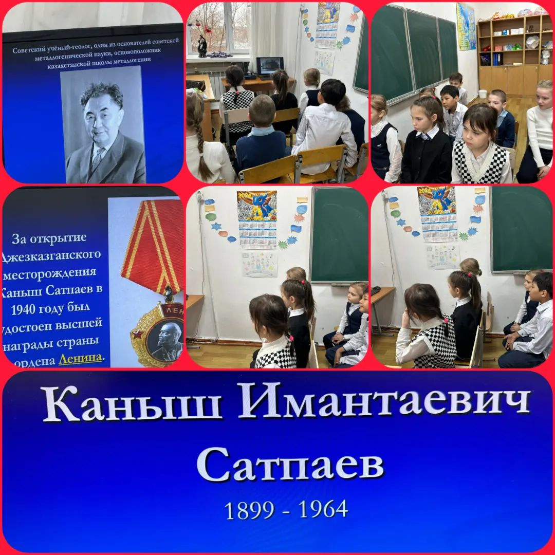 15.04.2024 ж. 2 «Б» сыныбында «Қаныш Сәтбаевтың 125 жылдығы» тақырыбында сынып сағаты өтті.