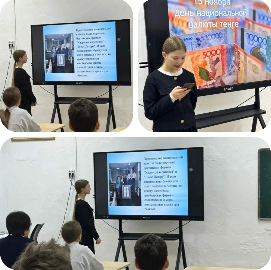10.11.25 күні мектебімізде «Ұлттық валюта күні» тақырыбында сынып сағаты 8 “ A” сыныбында өтті.