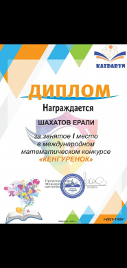 Халықаралық "Кенгуренок" математикалық байқауында 1 орын алған 4 А сынып оқушысы Шахатов Ералиды құттықтаймыз!