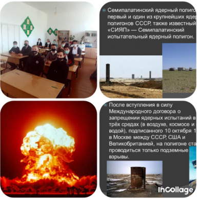Тарихи сауаттылық апталығы аясында 9 "А" сыныбында " Семей полигоны-халықтың қасіреті " атты сынып сағаты өтті. Сынып жетекшісі Габидуллина И.В. В рамках недели исторической грамотности в 9"А" классе прошел классный час "Семипалатинский полигон-боль наро