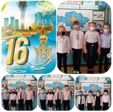 15.12.21 ж. 1 "Б" сыныбында "Қазақстан Республикасының Тәуелсіздік күні" тақырыбында сынып сағаты өтті. Балалар мерекенің тарихымен танысты, викторина сұрақтарына жауап берді, Отанымыздың рәміздері туралы айтты . Сынып сағатының соңында балалар біздің бүк