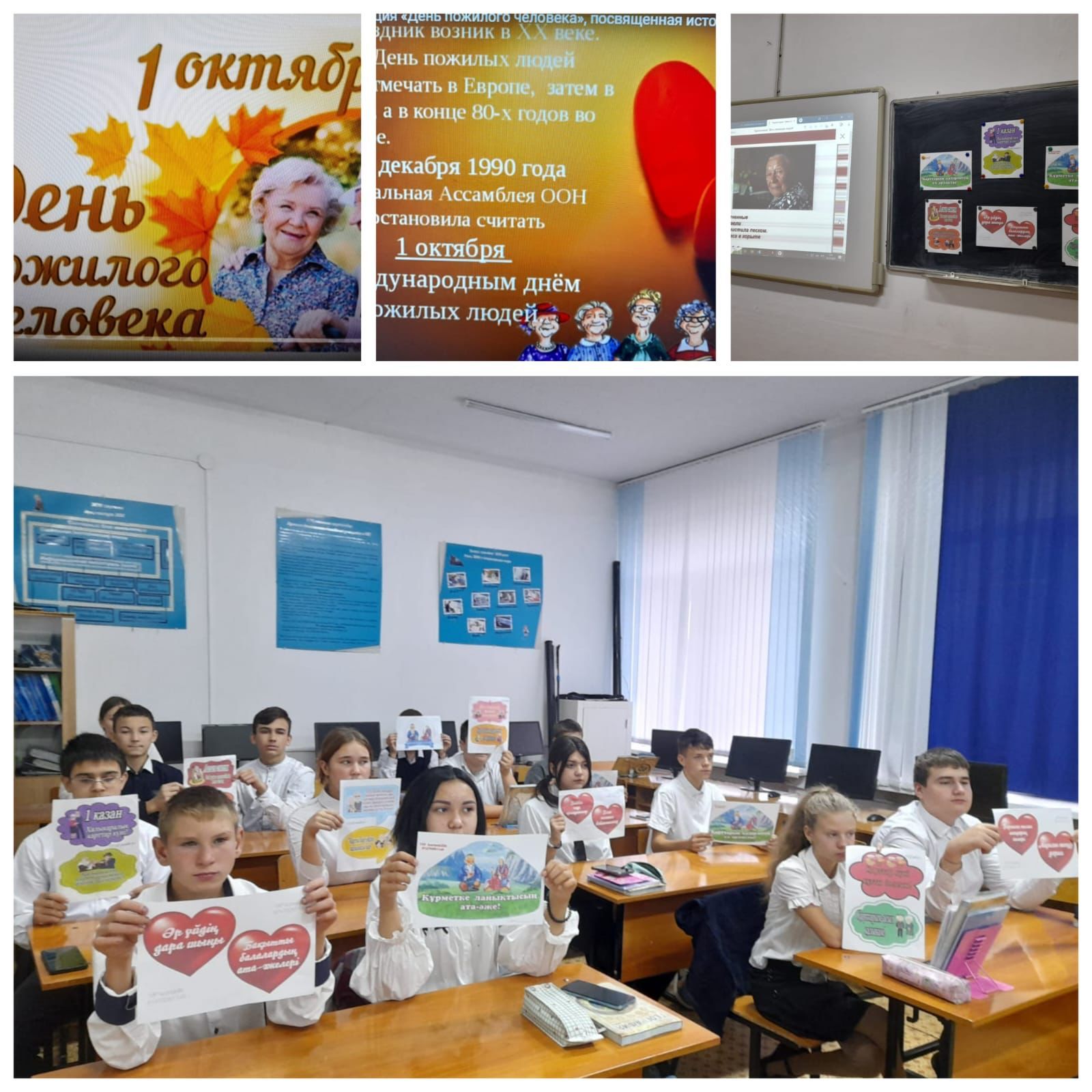 02.10.2023 жылы 8 «в» сыныбында Қарттар күніне арналған сынып сағаты өтті. Сынып сағатының мақсаты: балаларды аға буын өкілдерін құрметтеуге тәрбиелеу. Сынып жетекшісі Салихова Г.М.