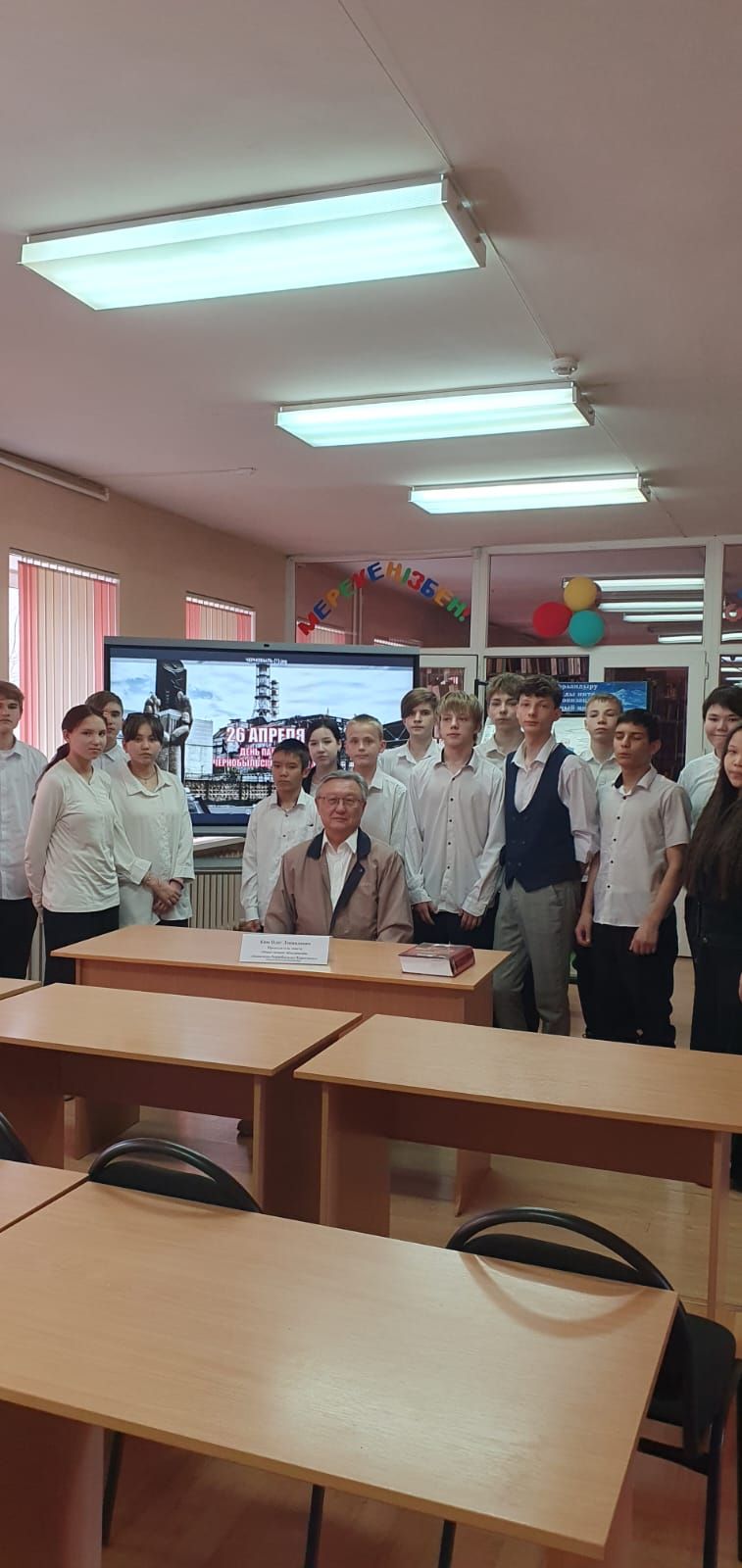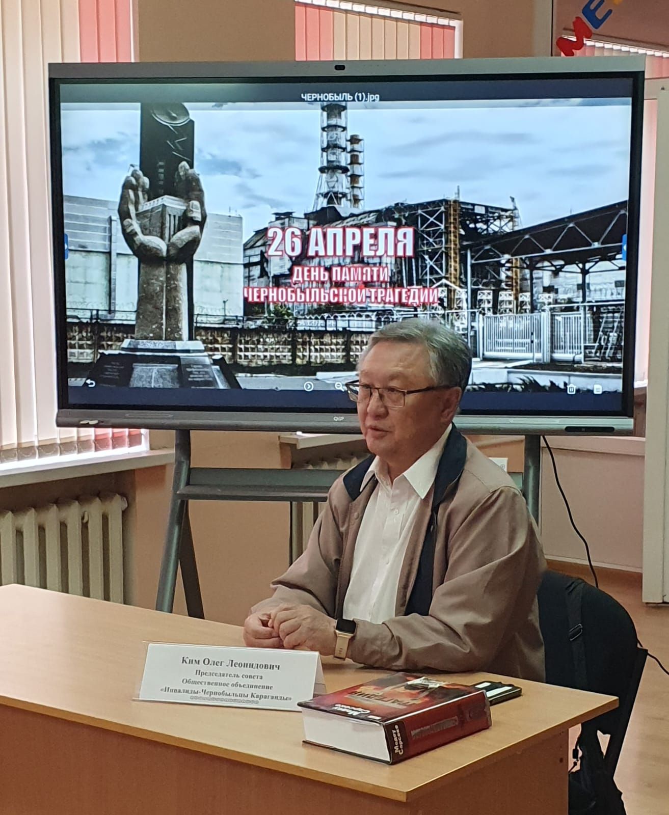 №4 мектеп-интернаттың жоғары сынып оқушыларының "Қарағандының Чернобыль апатынан аман қалған мүгедектер" қоғамдық бірлестігінің басқарма төрағасы Олег Леонидович Киммен кездесуі өтті.Оқушылар арасында патриотизм, қайырымдылық және экологиялық жауапкершілік сезімін қалыптастыру үшін Чернобыль апатын жоюшы О.Л. Ким апат салдарын жоюға қатысқан сол батырлық күндер туралы естеліктерімен бөлісті.