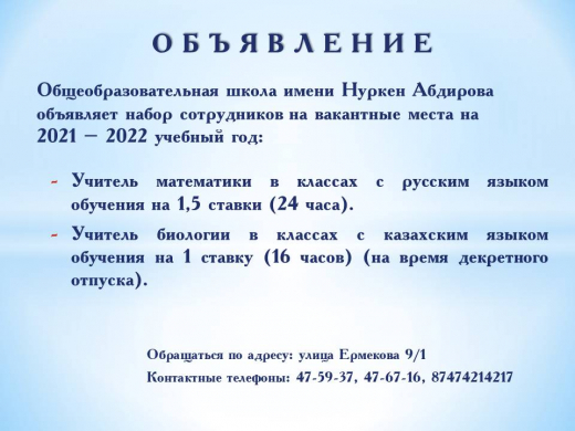 Бос лауазымдарға конкурс жариялау