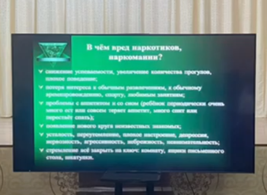 23 января для учащихся 8-9 классов была проведена лекция на тему «Профилактика наркомании, правовых аспектах потребления и распространения наркотиков».