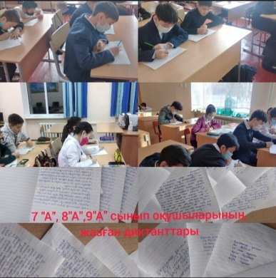 10 ақпан күні 7 «а», 8 «а» 9 «а» сыныптар арасында «Менің сүйікті қалам Қарағанды» тақырыбында диктант жазды.Мақсаты:Ойлау қабілеттерін қалыптастыра отырып, жүйелі сөйлеп, сауатты жазуға баулу.