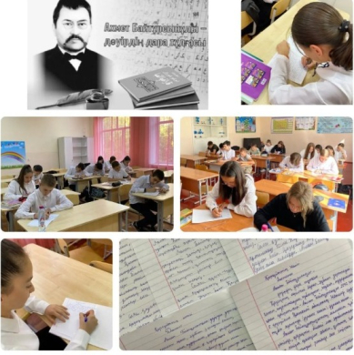 В честь 150 - летнего юбилея выдающегося казахского поэта, ученого, педагога, общественного деятеля Ахмета Байтурсынова среди учащихся 8-9 классов был проведен общеказахстанский открытый диктант на тему “Ахмет Байтурсынулы-дәуірдің дара тұлғасы”.