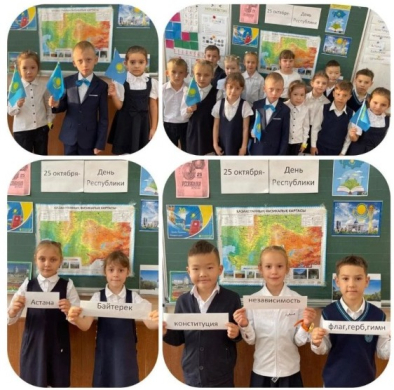 1 «Б» сынып оқушыларымен Республика күніне арналған «Менің Қазақстаным» атты сынып сағаты өтті.