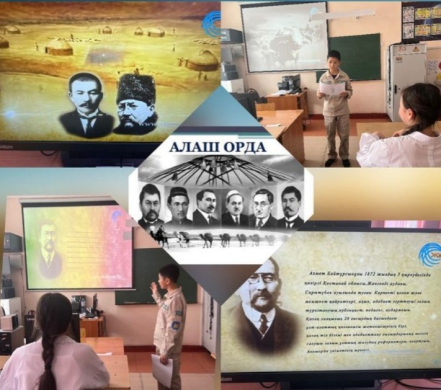 21.11.2022ж 7”A”сыныбы “Алаш партиясына 105жыл” тақырыбында сынып сағаты өтті. Мақсаты: Алаш партиясы, Алашорда үкіметі, Алаш зиялылары туралы мәліметтер және олардың тарихта алатын орны туралы баяндау. Тәрбиелік: Халқының тарихын қадірлеуге, ұмытпауға,
