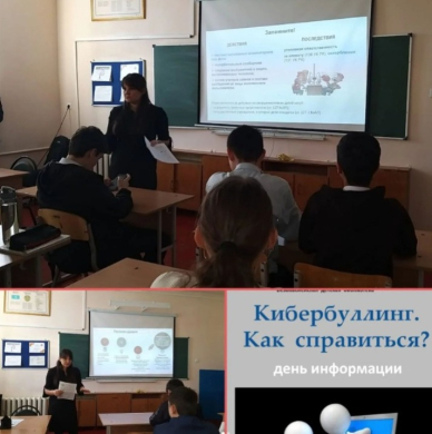 7 желтоқсанда кәмелетке толмағандар арасындағы құқық бұзушылықтың алдын алу жоспары бойынша мектеп психологы Осипова Е.В. 9 В сынып оқушыларымен «Кибербуллингтің алдын алу» тақырыбында сабақ өткізді.
