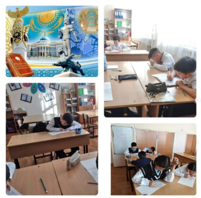 15 желтоқсан күні 4"А" сынып оқушылары Тәуелсіздік мерекесіне орай "Тәуелсіз елім—тұғырың сенің биікте!" тақырыбында диктант жазды.