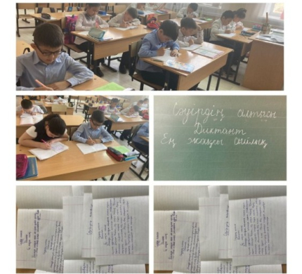 Оқу сауаттылығы апталығы аясында 3 “ а” сынып оқушылары ”Ең жақсы сыйлық” тақырыбында диктант жазды.