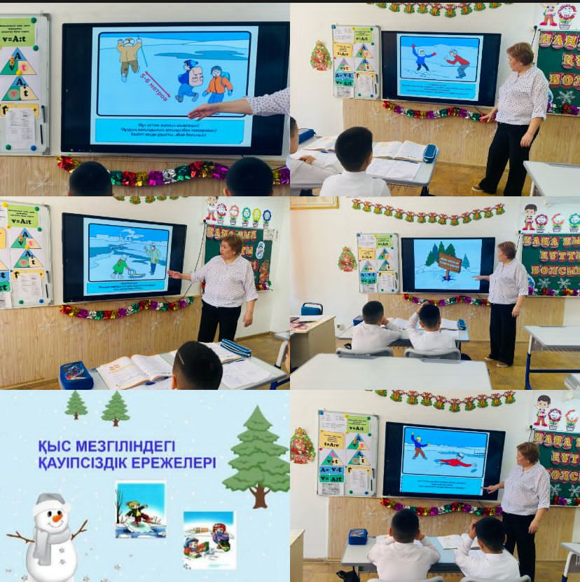 22.12.2025 ж. 3 "А" сыныбында "Қысқы демалыс кезіндегі қауіпсіздік ережелері " тақырыбында сынып сағаты өтті. Мақсаты:Қысқы демалыс кезіндегі оқушылардың техника қауіпсіздік ережелерін, далада, үйде, қоғамдық жерлерде тәртіп бұзбай, өздерін дұрыс ұстауларын, пиратехникалық заттарды пайдаланбауға, қауіпсіздік ережесін сақтай білу жөніндегі білімдерін бекіту;